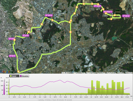 帰りはバス.総移動距離は17.6 km,歩いた距離は12.6 km.(18800)