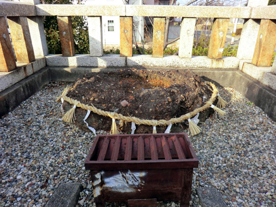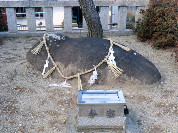 このコースには多くの史跡がありますが,今回の散歩の一番の目的は,旧猪子石村(現名東区猪子石)の地名の元になった二つの石(猪に似ているという),猪子石神社の牡石(左)と大石神社の牝石(右)を訪れること.牝石は礫岩で小石をたくさん含んでいるので,別名”子持ち石“.安産の神様として敬われています.