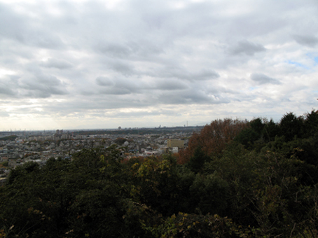 展望台からは名古屋市方面がよく見えます(右).写真右端の木々の間からは,東山公園の