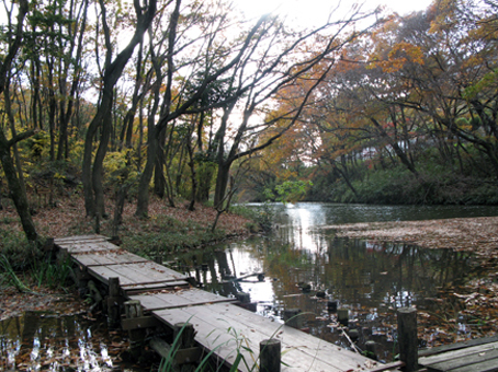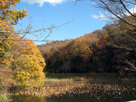 山の北側には,龍が天に昇ったという昔話が残る三ッ池(?)があり,このあたりは里山の風景です.今度は,山の南側を歩いてみよう.