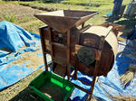 井堀の棚田では,青空の下,稲の脱穀中.昔懐かしい,唐箕や脱穀機が大活躍.