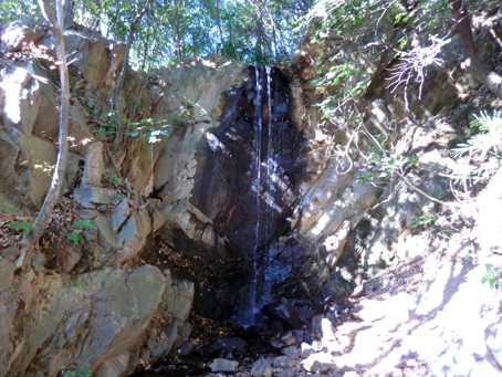 この滝のすぐ南にある岩崎城の石垣を切り出した際に出来たという説もあるそうな.滝の壁面は,ホルンフェルス.今度,石垣が何でできているか見てみよう.