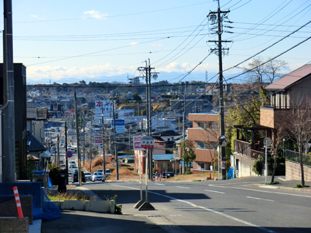 弁天池の南に戻り,帰路へ.ここからやや上り坂となる.そして,坂の頂上.西方を見ると,昭和区や千種区方面が一望.写真の中央やや右寄りには,東山公園のスカイタワーが.夜歩いていた時には,気がつかなかった風景です.(8700)