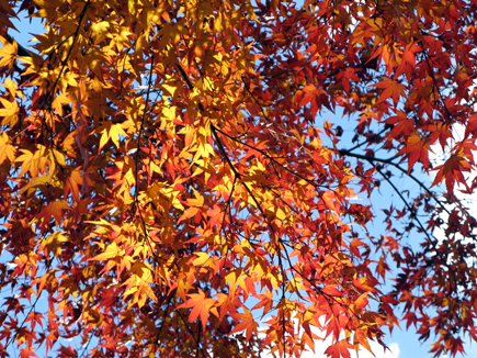今回は,先週の土曜日とは逆コース.目的のラーメン店は相変わらずお休み.ただ,お休みの張り紙は,新しくなったような気が.張り紙が更新されているということは,再開の可能性があるのか.仕方がないので,近くのコンビニでおにぎりとお茶を買って,今日の目的地である岩崎城に向かう.ここは丹羽氏の居城で,小牧・長久手の戦いの趨勢に直結した重要な戦いがあった所.当時は,現在建てられているような天守があったわけではありませんが,土塁や空堀を含めて当時の様子は良く残っています.紅葉は,逆光で撮ると綺麗だということを思い出して,写真を一枚.
