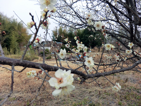 さらに,梅の咲く畑や椿の咲く庭を見ながら歩いていると,見慣れた御嶽山の散歩コースに合流.そして帰宅.