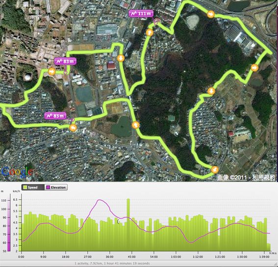 本日の歩行距離は,7.92 km. 2日連続の散歩はさすがに疲れる.(12500)