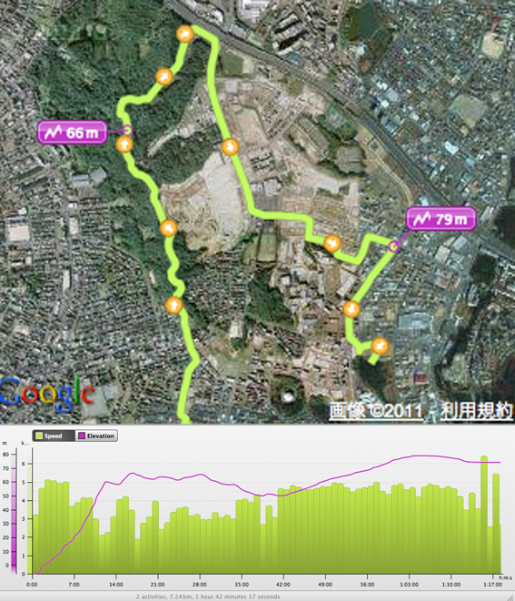 ここでは,様々な電波と混信するためか,いつもGPSデータが不安定となる.今回も,ここでトラックが途切れる.(11500)