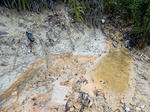 7年前と変わらない露頭があった.全体が瀬戸層群の粘土層だろう.下半分が酸化・赤色化している.もともとこの部分に沈殿したものか.