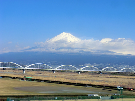新幹線富士川鉄橋を通過する際に撮そうと,これまで何度か試みたが,全てアーチが被ってしまった.今回は,奇跡的に上手く撮れた.