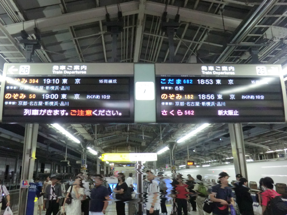 台風16号による強風のため,新大阪より西が始発の新幹線は,軒並み10分以上の遅れ.しかし,新大阪始発の「のぞみ394」は,定時を2分遅れで出発したのでした.