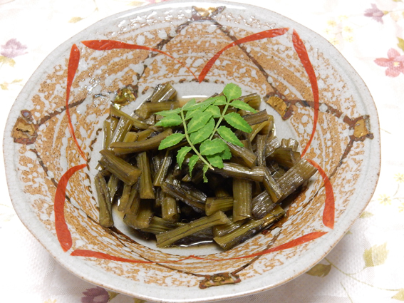 今朝見るとゆで汁が黒くなっていました.それを配偶者が味付けし一品.