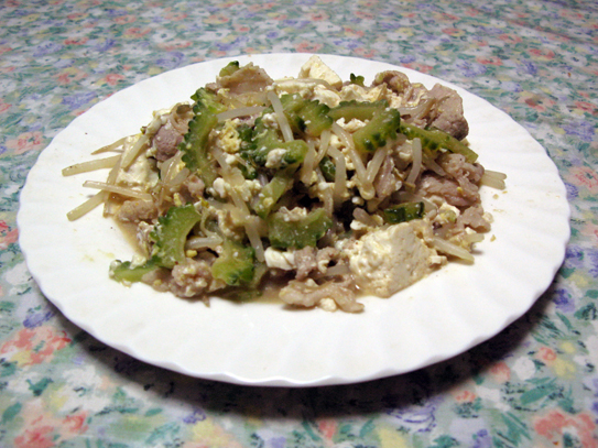 実家で栽培された(家庭菜園?)ゴーヤーを,院生からもらいました.