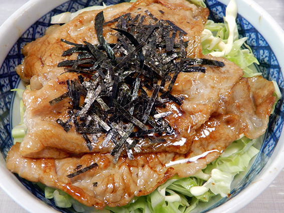 麺が足らないので,私だけキャベツと豚肉の丼.味付けは冷蔵庫の奥に隠れていた蒲焼きのタレ.配偶者には内緒でマヨネーズも.