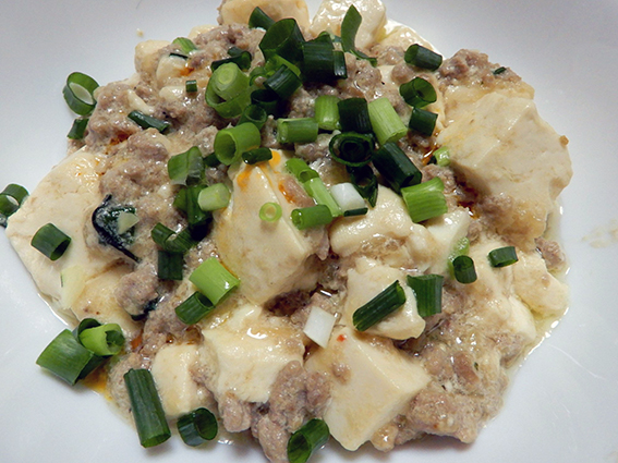 本日の夕食:そんなつもりはなかったけれど,主菜と言われてしまった.給食がストップして消費が減っている牛乳を使った一品.牛乳麻婆豆腐.