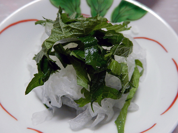 もう一品は,愛知県が生産量日本一の大葉とタマネギのサラダ.大葉は,和食用の需要が落ち込んでピンチとのこと.地産地消.大いに食べましょう.