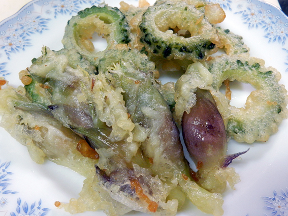 まだまだ,とれ続けているゴーヤ.今日は,塩麹で味付けをした衣で,天ぷらにしてみました.