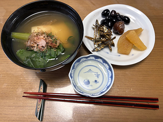 美濃の田舎の雑煮も配偶者の実家金沢の雑煮も,そしてどうやら尾張の雑煮も,お餅に青菜(我が家は正月菜)と極めて質素 田舎ではこれにカツオ節