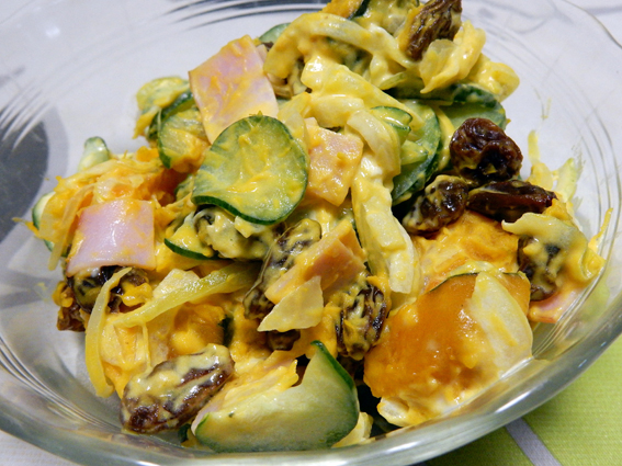 こういった習わしを大切にする配偶者だけど,ひょっとしたら年のせいで忘れたかと思いつつ,よく見ると,カボチャのサラダ.