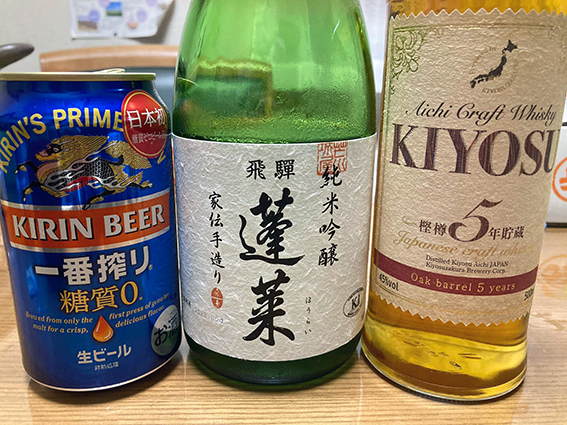 [6,7]うまいビールとお酒と[8]ウイスキーをいただきました.