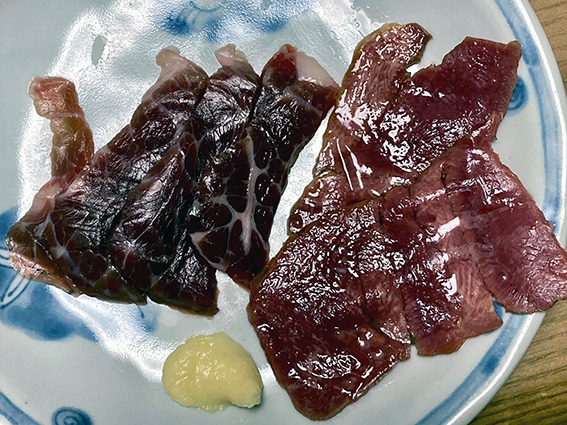 夕食:[3]鰻の他に,[4]馬刺しと[5]牛タン.