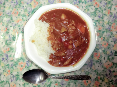 今日の夕食は,ハッシュドビーフと,配偶者+娘たちが宣う.