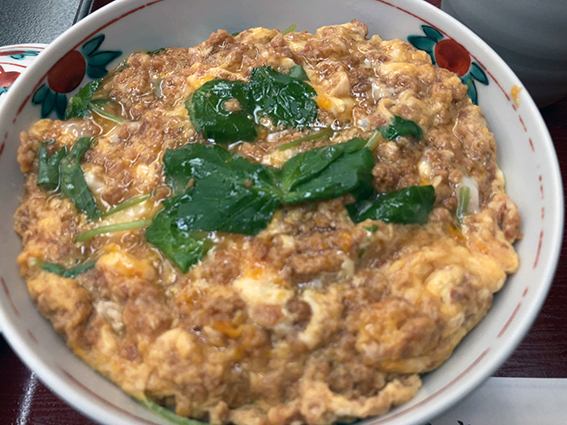 かま定食(親子丼)。名前の由来は?鶏のひき肉がつかってある。