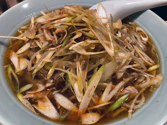 一目見た時、カプサイシンに弱い私は、失敗したと思った。しかし、大量のネギの甘味が辛さと絶妙のバランスをとって、とても美味しくいただけた。こういった味もあるんだ。