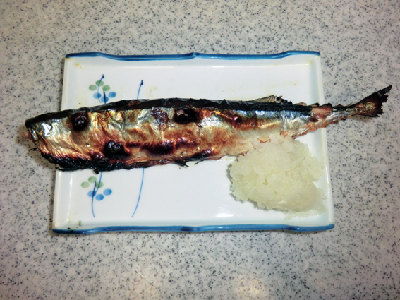 帰宅すると,今日の夕食のメインは秋刀魚.