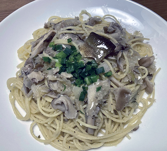 今日の昼食は、そのアヒージョを使ってパスタをつくってみた。