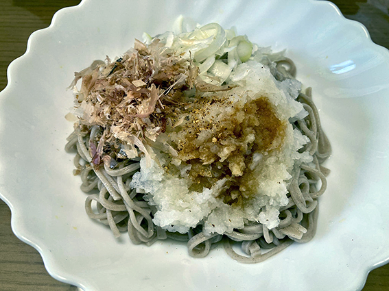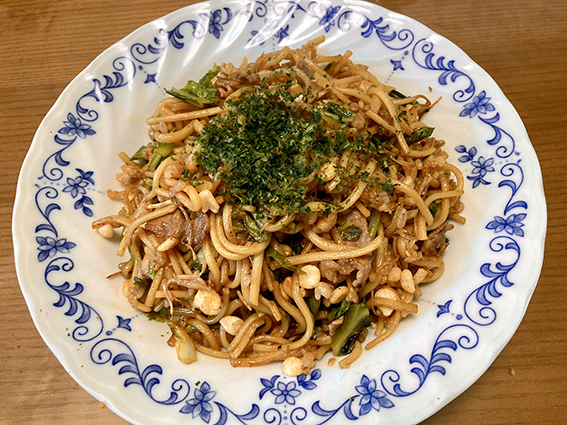 しかし中華麺はないので,先日購入した蕎麦を使うことにした.