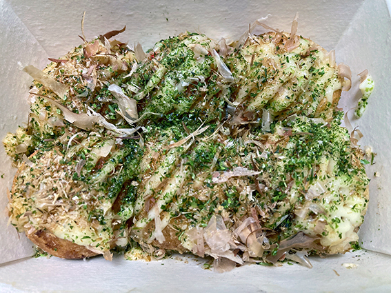 そして、名古屋では、食事と言うよりおやつ・軽食感覚で、お好み焼きが食べられている。アルミホイルでくるんだ二つ折りは食べ歩きにも便利。