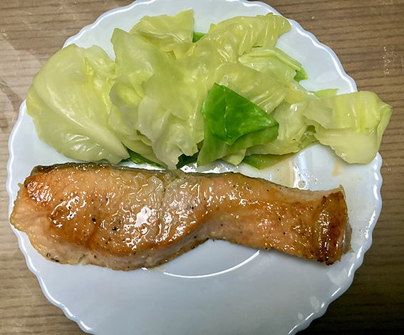 最近、AI管理栄養士さんに、カロリーと炭水化物が少なめと、低い点数をつけられている。これならどうだ。でも、今度は脂肪分過多と言われるだろうな。