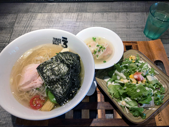 徒歩圏内に,塩ラーメンをメニューの中心としたお店があることを思いだした.そして,解体が始まったガスタンクの様子を見るのとあわせて散歩がてら出かけた.サンディエゴ発祥で逆輸入(?)のお店.