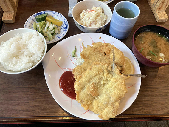 前回,私の直前の人で鰺フライが売り切れたお店.今日はいただくことができた.