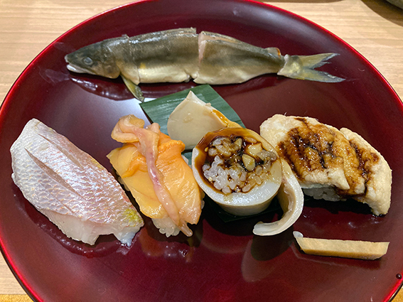 味には関係しないが,飾り付けの時からそうだったのか,運んでいる際にそうなったのか,海苔がトッピングをおおい,見栄えを楽しめなくてちょっと残念.気がつけば,海苔を変えるもしくは位置を直すことはできたはずで,お店の矜持や如何に.