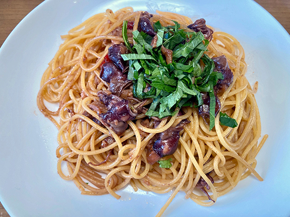 鋭敏なカプサイシンセンサーを持つ私が,暑い昼間にあえてペペロンチーノ.調味料は何も加えず,沖漬けの味.味を濃くしないでと言われたが,そもそも何も加えないのだからどうしようもない.従って,味見もせずに提供した.配偶者もカプサイシンに反応していたが,それ以外についてはちょうど良かったそうだ.
