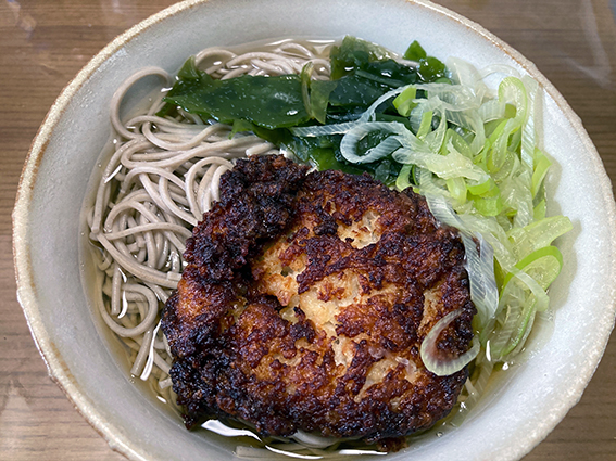 ここで,そばの上に乗っているのは,いわゆるジャガイモコロッケではなく,揚げた「鶏しんじょ」のようなものだった.どうやらコロッケそばというこのメニューが先にあり,いつの間にかいわゆる普通のコロッケを使ったそばが一般化したらしい.