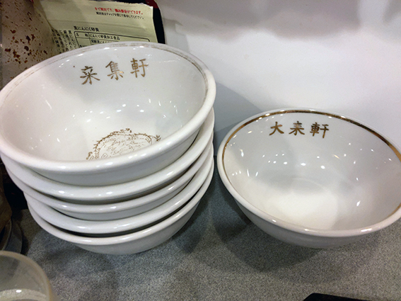 気がつくと,お店の食器には,来集軒と大来軒の二種類の名前が.