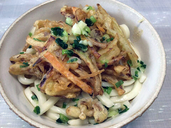 原稿の修正が一区切りついたので,さて今日はきつねうどんをつくろうと1階へ下りようとしたら,「かき揚げうどんができたわよ」.