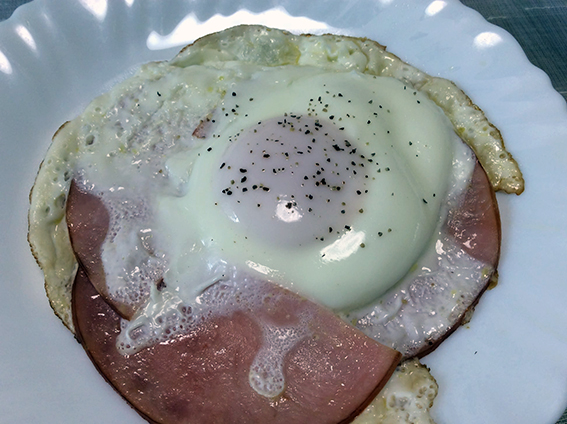 マヨネーズとハムの塩味だけで充分.醤油などは不要だった.