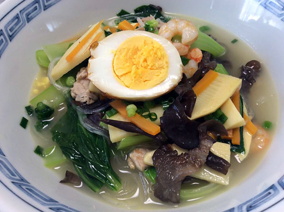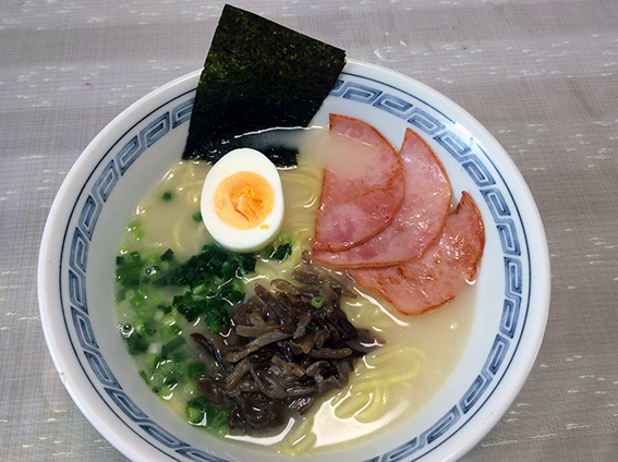 具は焼き豚と玉子のみときわめてシンプル.万能ネギをトッピングしてみた.