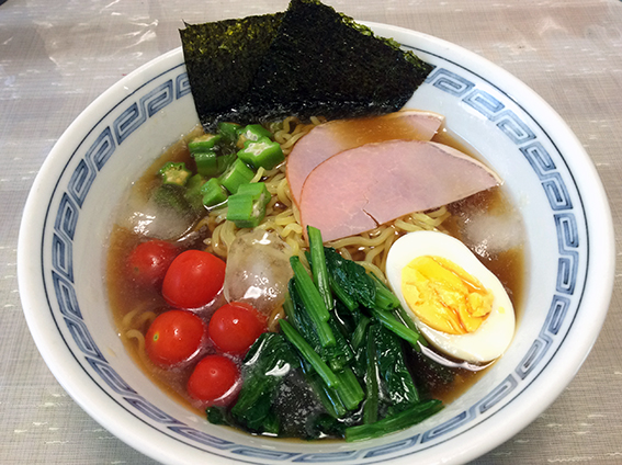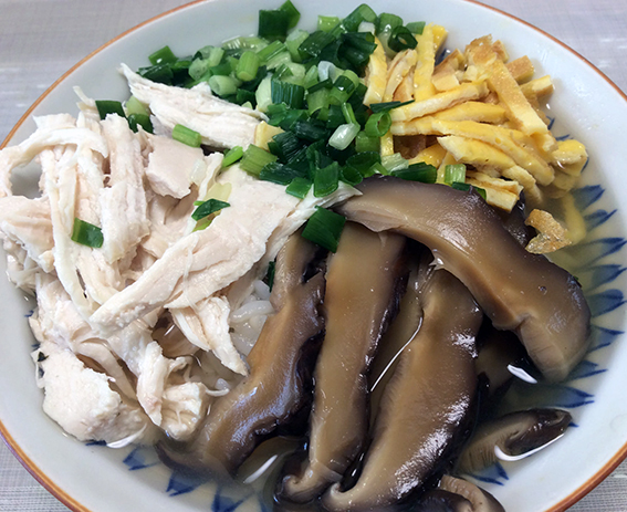 今日は,ちょっと変化球でコロ(香露)うどん.早い話が冷やしうどん.