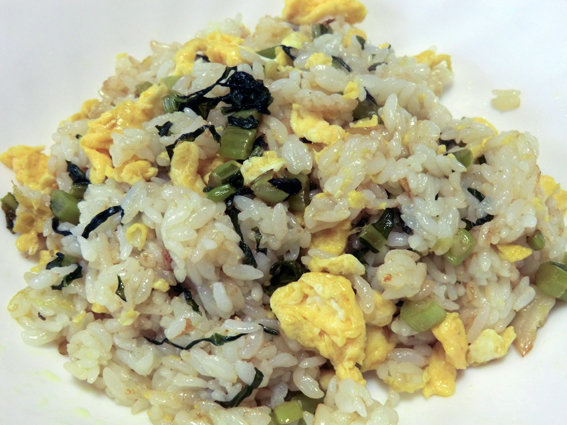 その結果,今日の昼食は野沢菜漬け炒飯.野沢菜漬けだけでの味付け.もっと塩っぱいかと思ったけれど,思ったより薄味になってしまった.