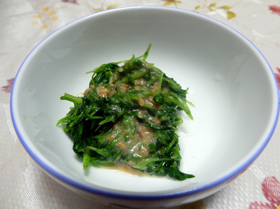 今朝見るとゆで汁が黒くなっていました.それを配偶者が味付けし一品.