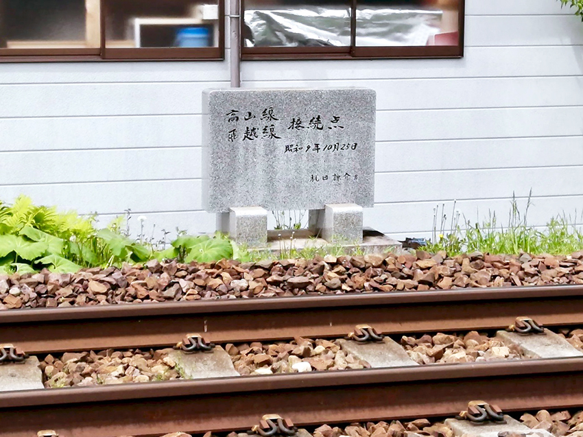 調べてみると,岐阜側から高山線,富山側から飛越線として建設が進められ,最終的に高山駅をはさんだ飛騨小坂駅—坂上駅間がつながり,高山本線となった.そして,この碑は高山駅から少し北,上枝駅(ほずええき)寄りにあるとのこと.