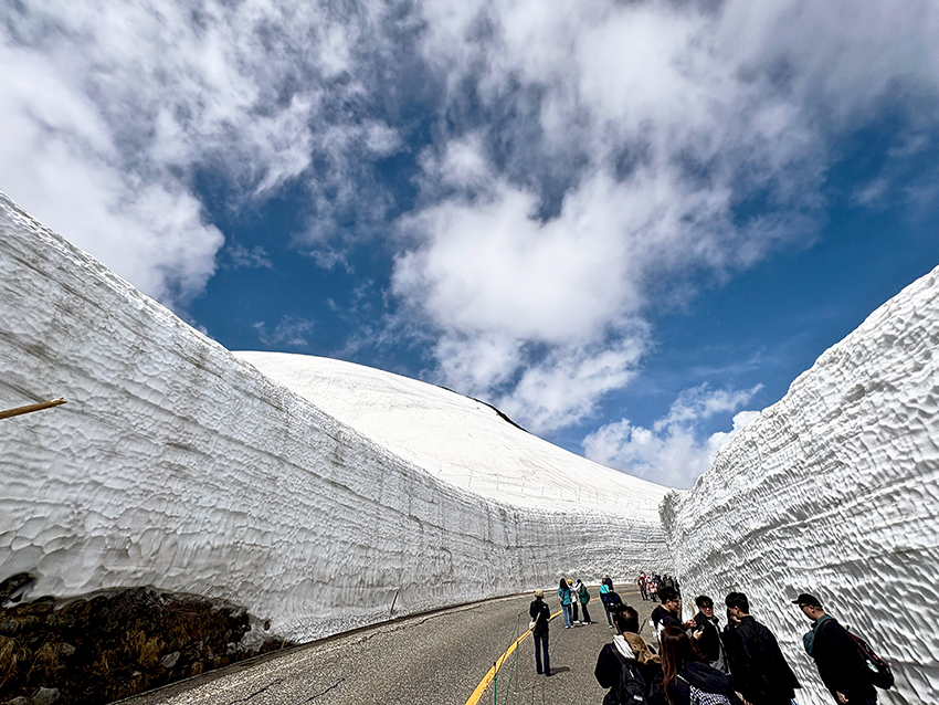 早朝出発の強行日程で,9時前には室堂着 気温5℃ 雪層厚は最高15 m