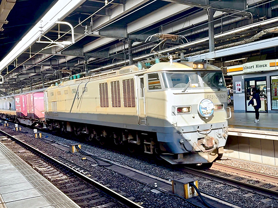 昨日,大高駅に行くために名古屋駅にいたところ,ヘッドマークをつけたJR貨物EF510-509が通過.