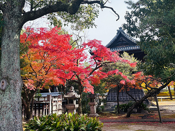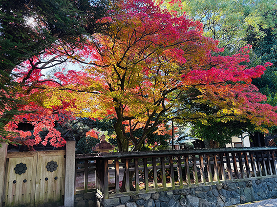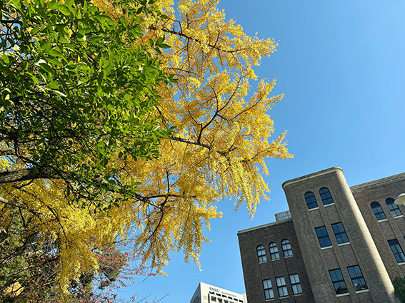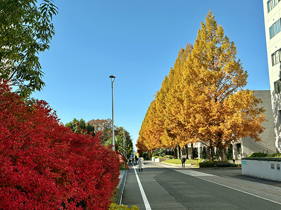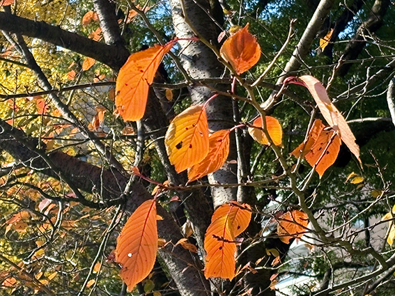 日当たりのよい緑地南側の一部だけ紅葉が進んでいる