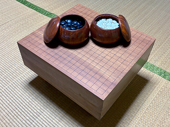 父はこの碁盤を何かの記念にと買って,たいそう大切にしていた.そして当時小さかった孫たち(私たちの子どもたち)には触れさせなかった.