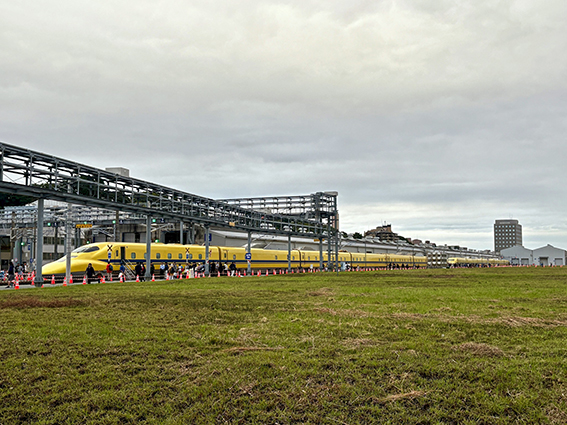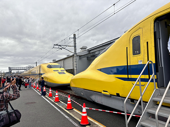 通常は大井車両基地に留置されている,ドクターイエローT4編成とT5編成が,この催しのために移動してきた.また,トラバーサーによる車両移動も.JR東海さん,やってくれるね.